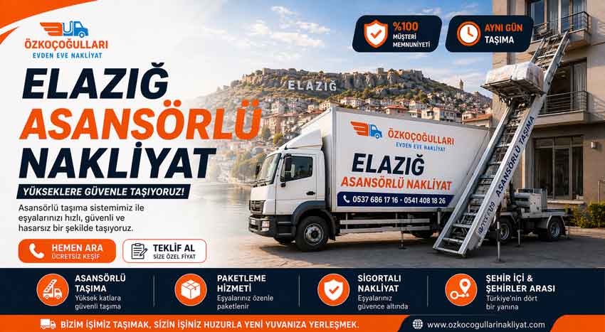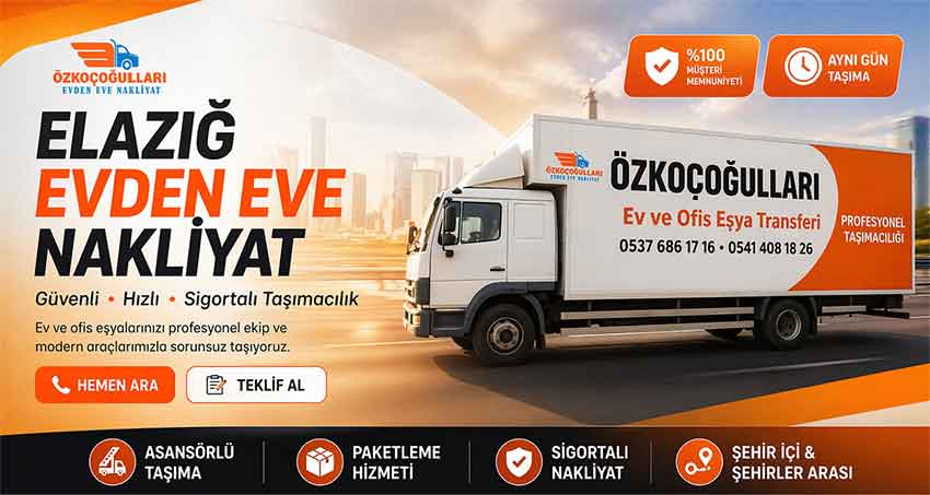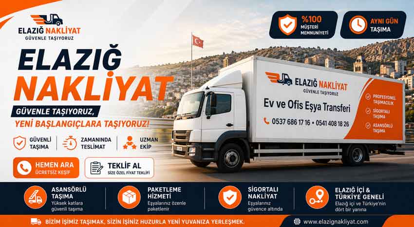 Elazığ Nakliyat Firması 2026 Rehberi Elazığ nakliyat firması olarak şehir içi ve şehirler arası taşımacılık hizmetlerinde güvenli, hızlı ve sigortalı çözümler sunuyoruz. Ev taşımadan ofis taşımaya, asansörlü nakliyattan parça eşya…